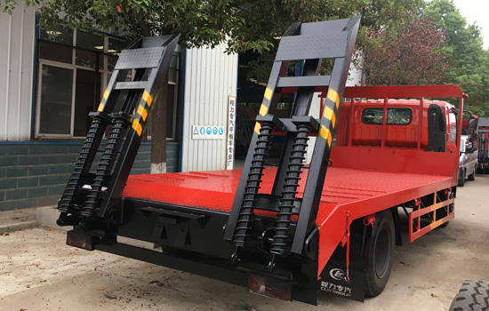 三環創客挖機平板運輸車上裝配置:上裝橫梁采用10*10規格5mm或者6mm厚方鋼,貨箱平板采用5mm或者8mm厚花紋板,爬梯采用雙簧加強設計,帶有簡易后支腿,可選擇液壓折疊爬梯,,平板長度4.1米 寬度,2.4米,平板離地高度90公分,是運輸8噸左右小型挖掘機、小型工程機械等最理想的拖車。