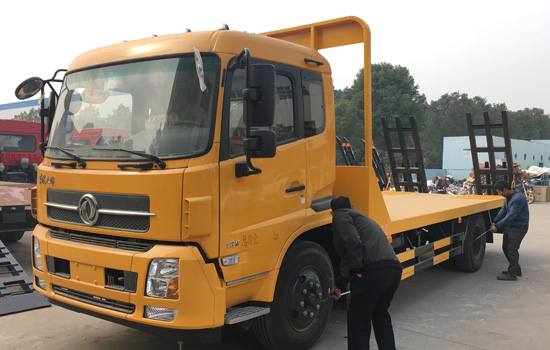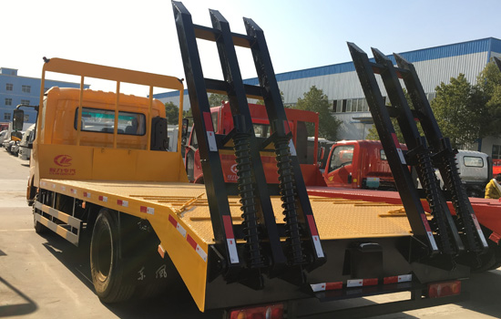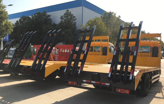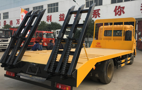 上裝配置:平板底板橫梁采用100*100*5mm方管,底板采用5mm或8mm花紋板,帶加密斜支撐,爬梯采用雙彈簧加強型設計,采用三道筋+雙彈簧加固焊接,可選裝液壓爬梯或折疊加長型液壓爬梯,斜坡處帶后支腿,平板有效板長6.8米(含斜坡),板寬2.5米(可選裝帶左右加寬伸展),可以選擇貨箱帶欄板設計,15噸及15噸以下噸位挖機首選車型!